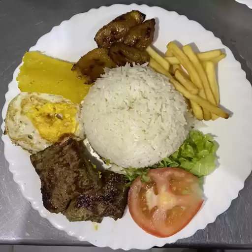 Acompanha: (150g de picanha), arroz, batata frita, banana, ovo, salada, farofa, ... Ver completo